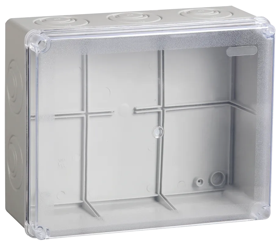 Коробка КМ41278 распаячная для о/п 240х195х165 мм IP55 (RAL7035, прозр. кр., кабельные вводы 5 шт)