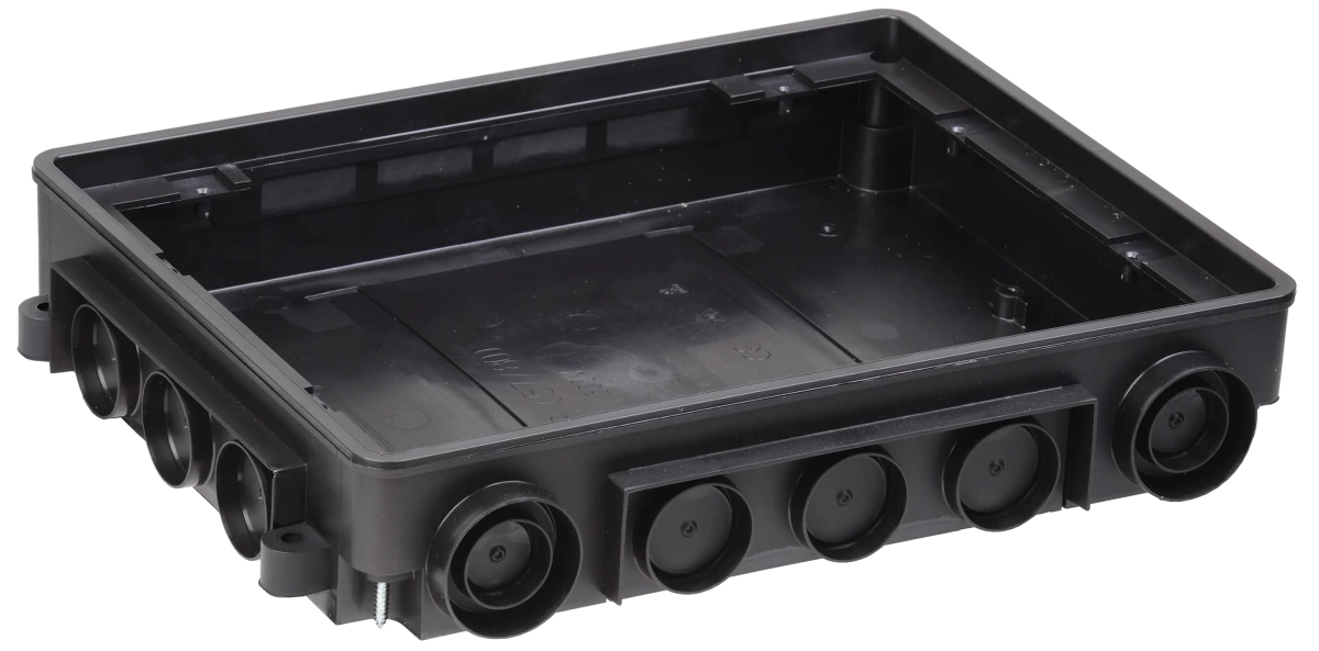 Описание Коробка напольная ONFLOOR предназначена для установки в бетонные полы. После затвердения в коробку устанавливается напольный лючок на 16 модулей.
