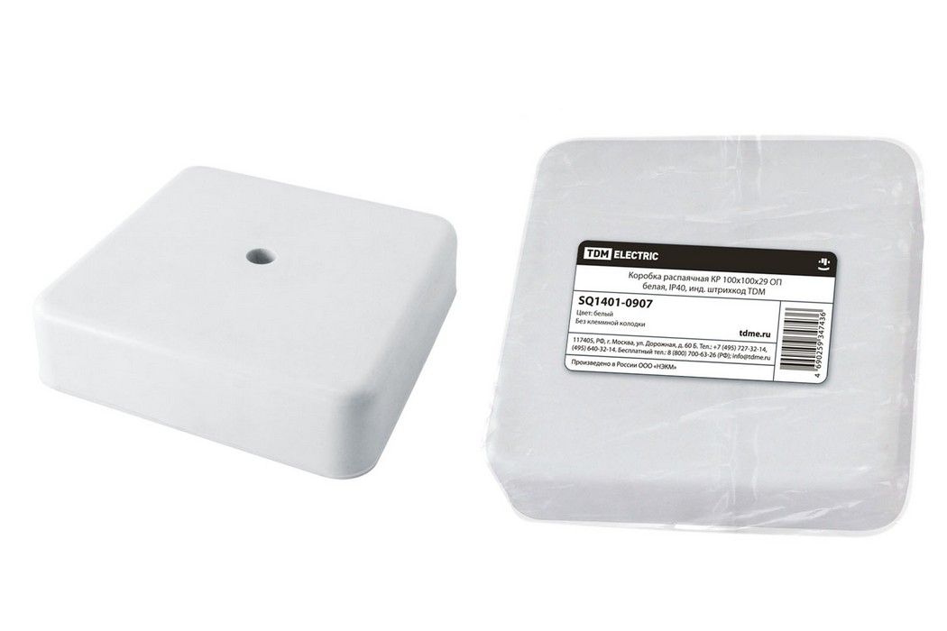 Коробка распаячная КР 100х100х29 ОП белая, IP40, инд. штрихкод TDM