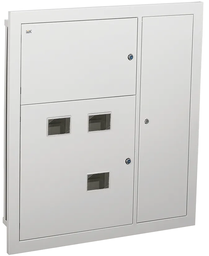 Описание Используется для сборки этажного распределительного щита на 3 квартиры, предназначенного для приема и распределения электроэнергии в жилых и общественных зданиях, а также для защиты отходящих линий при перегрузках и коротких замыканиях.Сварной металлический корпус состоит из трех отсеков - вводно-учетного, распределительного, отсека слаботочного оборудования. В вводно-учетном и распределительном отсеках размещены DIN-рейки для крепления счетчиков (по количеству квартир). В распределительном отсеке установлены DIN-рейки для аппаратов групповых линий и рейка для установки шин N и РЕ. Отсек укомплектован оперативной панелью. Отсек слаботочного оборудования снабжен перфорированными профилями для прокладки теле- и радиосетей, телефонных линий, сетей охранной сигнализации, домофонов и т.п. Для обеспечения пожарной безопасности между слаботочным и силовым отсеками расположена разделительная перегородка.