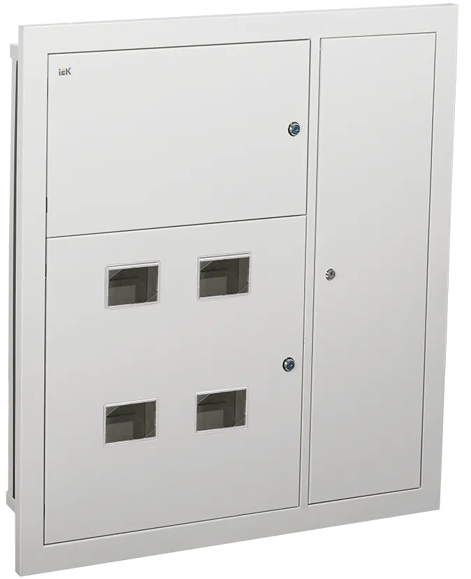 Описание Используется для сборки этажного распределительного щита на 4 квартиры, предназначенного для приема и распределения электроэнергии в жилых и общественных зданиях, а также для защиты отходящих линий при перегрузках и коротких замыканиях.Сварной металлический корпус состоит из трех отсеков - вводно-учетного, распределительного, отсека слаботочного оборудования. В вводно-учетном и распределительном отсеках размещены DIN-рейки для крепления счетчиков (по количеству квартир). В распределительном отсеке установлены DIN-рейки для аппаратов групповых линий и рейка для установки шин N и РЕ. Отсек укомплектован оперативной панелью. Отсек слаботочного оборудования снабжен перфорированными профилями для прокладки теле- и радиосетей, телефонных линий, сетей охранной сигнализации, домофонов и т.п. Для обеспечения пожарной безопасности между слаботочным и силовым отсеками расположена разделительная перегородка.