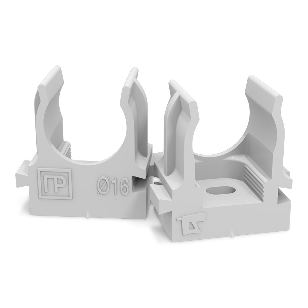 Крепеж-клипса для труб атмосферостойкая для монтажного пистолета серая в п/э d16 мм (100шт/1100шт уп/кор) Промрукав