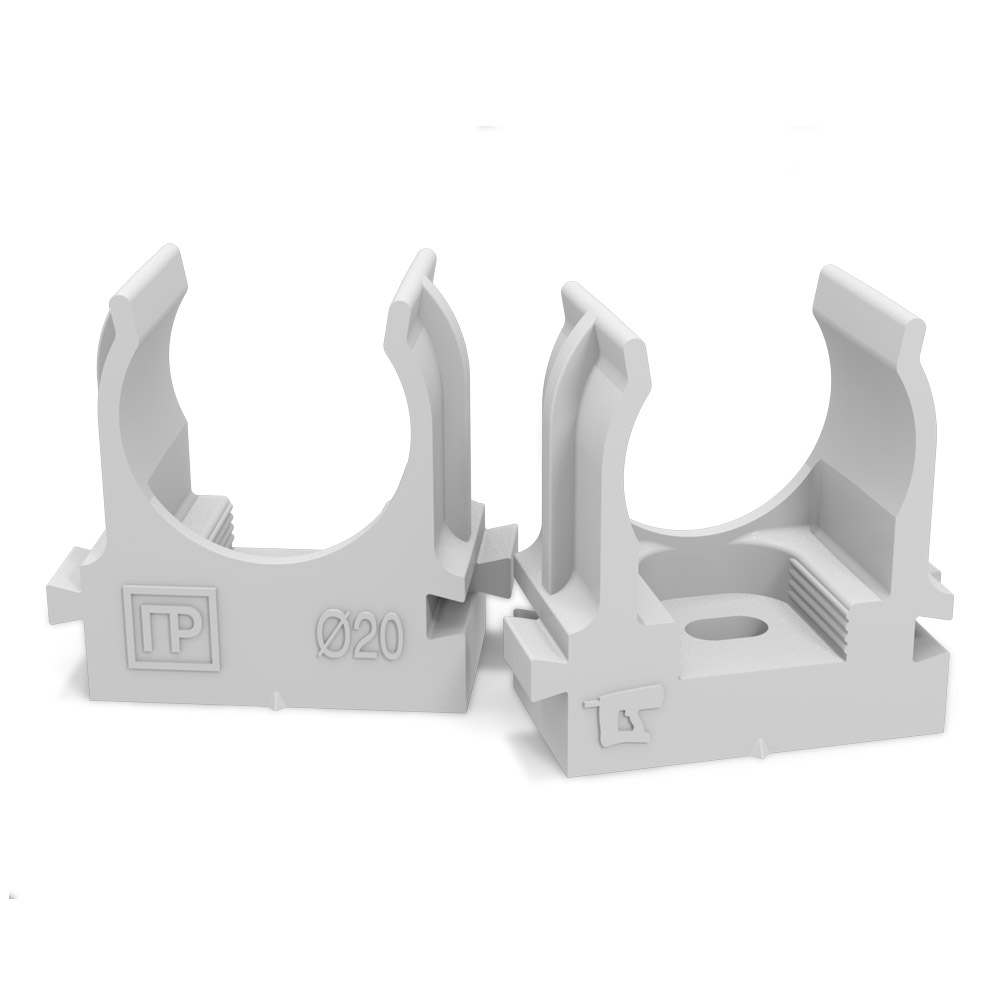 Крепеж-клипса для труб атмосферостойкая для монтажного пистолета серая в п/э d20 мм (100шт/900шт уп/кор) Промрукав