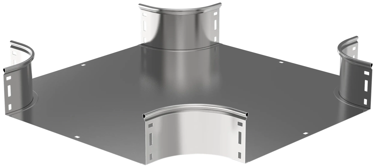 Описание Крестовина плавная предназначена для организации X-образного ответвления кабельной трассы. Крышка аксессуара в комплект не входит.Аксессуар изготовлен из стали горячего цинкования методом Сендзимира (защитный слой цинка не менее 10 мкм).