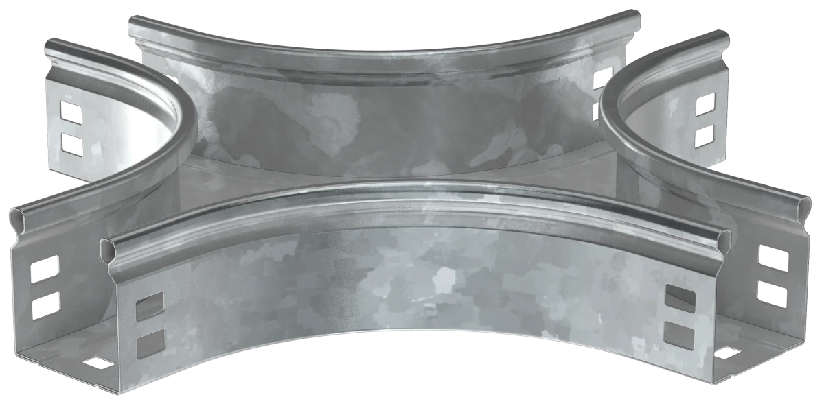 Описание Крестовина плавная предназначена для организации X-образного ответвления кабельной трассы. Крышка аксессуара в комплект не входит.Аксессуар изготовлен из стали с цинковым покрытием, нанесенным погружением изделий в расплав цинка (защитный слой цинка не менее 55 мкм).