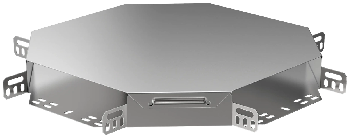 Описание Крестовина служит для организации Х-образного ответвления кабельной трассы. Данный аксессуар поставляется в комплекте с крышкой.