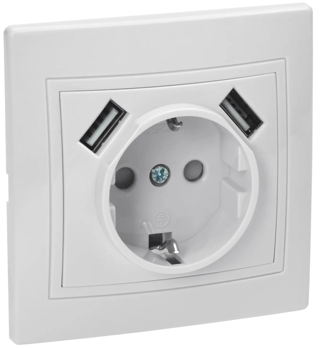 Наименование в каталоге КВАРТА Розетка с заземлением со шторками белая 16А USBх2 2,1А