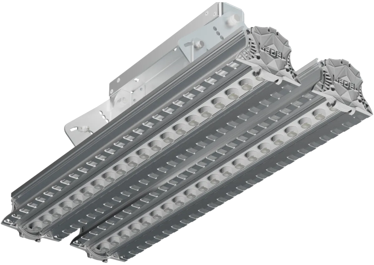 Описание Светодиодный светильник нового поколения L-industry Turbine HB предназначен для освещения производственных помещений, территорий промышленных предприятий, логистических комплексов. Цельнометаллический алюминиевый профиль изготовлен методом экструзии. Корпус светильника имеет специальные участки для усиления естественной конвекции, что позволяет снизить массу и обеспечить оптимальный температурный режим работы светодиодов и электронных компонентов. Светильник имеет 1 вариант крепления - крепление типа HB для высоких пролетов. Драйвер собственной разработки гарантирует срок эксплуатации светильника (100 000 часов). Драйвер LEDEL обеспечивает трехступенчатую защиту светильника (термозащита, защита от короткого замыкания и микросекундных импульсных помех). Обеспечивает максимальную эффективность использования электрической энергии и высокий коэффициент мощности свыше 0.95. Стекло выполнено из ударопрочного поликарбоната.