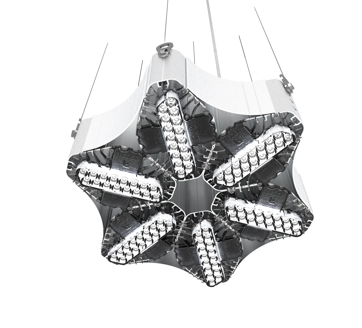 Описание Предназначен для освещения промышленных объектов, логистических комплексов, торговых помещений, выставочных павильонов и т.п. Модульная конструкция за счет продольных пазов типа «ласточкин хвост» позволяет собирать из нескольких светильников осветительные установки различных форм и размеров. Легкий алюминиевый корпус обтекаемой формы обеспечивает дополнительную защиту охлаждающих каналов от влаги и пыли, а вертикальное расположение модулей усиливает охлаждение восходящими потоками воздуха. На корпусе не остаются отпечатки пальцев, а возможность покраски в любой цвет из каталога RAL позволяет сочетать светильник с дизайнерской концепцией объекта. Компактное поворотное крепление для светодиодных прожекторов состоит из одной детали, благодаря этому дополнительно снижен веса и уменьшены габариты светильника. Оптическая система укомплектована мультилинзой из оптического ПММАМультилинза доступна на КСС Г30 и Г60.