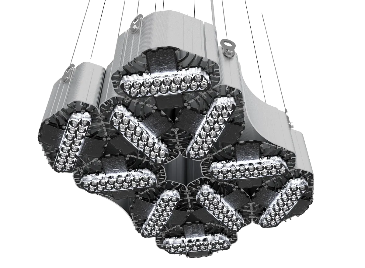 Описание Предназначен для освещения промышленных объектов, логистических комплексов, торговых помещений, выставочных павильонов и т.п. Модульная конструкция за счет продольных пазов типа «ласточкин хвост» позволяет собирать из нескольких светильников осветительные установки различных форм и размеров. Легкий алюминиевый корпус обтекаемой формы обеспечивает дополнительную защиту охлаждающих каналов от влаги и пыли, а вертикальное расположение модулей усиливает охлаждение восходящими потоками воздуха. На корпусе не остаются отпечатки пальцев, а возможность покраски в любой цвет из каталога RAL позволяет сочетать светильник с дизайнерской концепцией объекта. Компактное поворотное крепление для светодиодных прожекторов состоит из одной детали, благодаря этому дополнительно снижен веса и уменьшены габариты светильника. Оптическая система укомплектована мультилинзой из оптического ПММАМультилинза доступна на КСС Г30 и Г60.