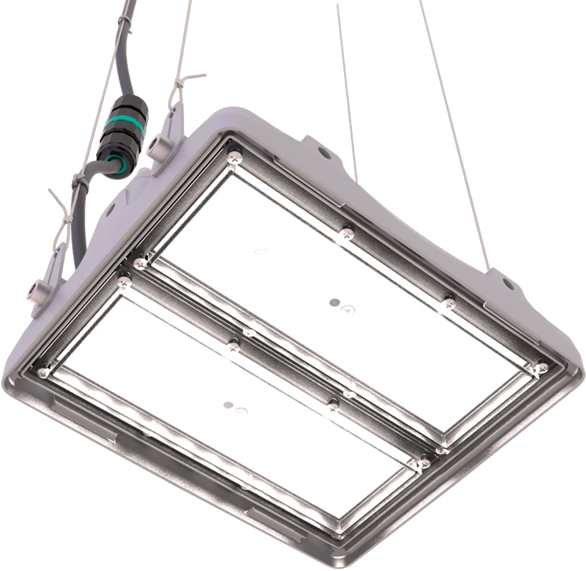Описание L-pixel подходит для освещения складов, заводов и фабрик, логистических комплексов, а также спортивных объектов и открытых парковок. Светильник может состоять из одного, двух, трёх, четырёх или шести модулей в серийном исполнении - по техническому заданию возможно больше. Конструкция корпуса предусматривает защиту драйвера и электронных компонентов от попадания влаги. Если на крышку корпуса падает снег, он быстро тает и стекает вниз через специальные пазы. Конструкция исключает образование сосулек. Подвесное крепление - классическое решение для освещения внутренних пространств промышленных помещений и логистических комплексов. Мультилинза из оптического ПММА минимизирует светопотери. Запатентованный драйвер собственной разработки обеспечивает трехступенчатую систему защиты от микросекундных помех до 2 кВ, скачков напряжения до 430 В и перегрева.
