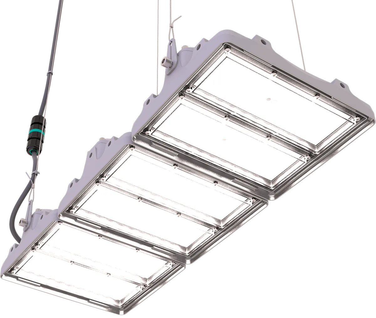Описание L-pixel подходит для освещения складов, заводов и фабрик, логистических комплексов, а также спортивных объектов и открытых парковок. Светильник может состоять из одного, двух, трёх, четырёх или шести модулей в серийном исполнении - по техническому заданию возможно больше. Конструкция корпуса предусматривает защиту драйвера и электронных компонентов от попадания влаги. Если на крышку корпуса падает снег, он быстро тает и стекает вниз через специальные пазы. Конструкция исключает образование сосулек. Подвесное крепление - классическое решение для освещения внутренних пространств промышленных помещений и логистических комплексов. Мультилинза из оптического ПММА минимизирует светопотери. Запатентованный драйвер собственной разработки обеспечивает трехступенчатую систему защиты от микросекундных помех до 2 кВ, скачков напряжения до 430 В и перегрева.