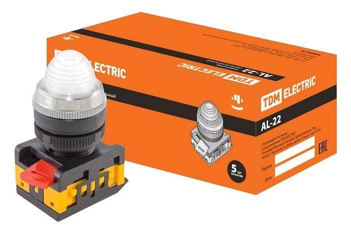 Лампа AL-22 сигнальная d22мм белый неон/230В цилиндр TDM