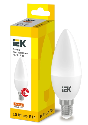 Наименование в каталоге Лампа LED ALFA C35 свеча 10Вт 230В 3000К E14 IEK