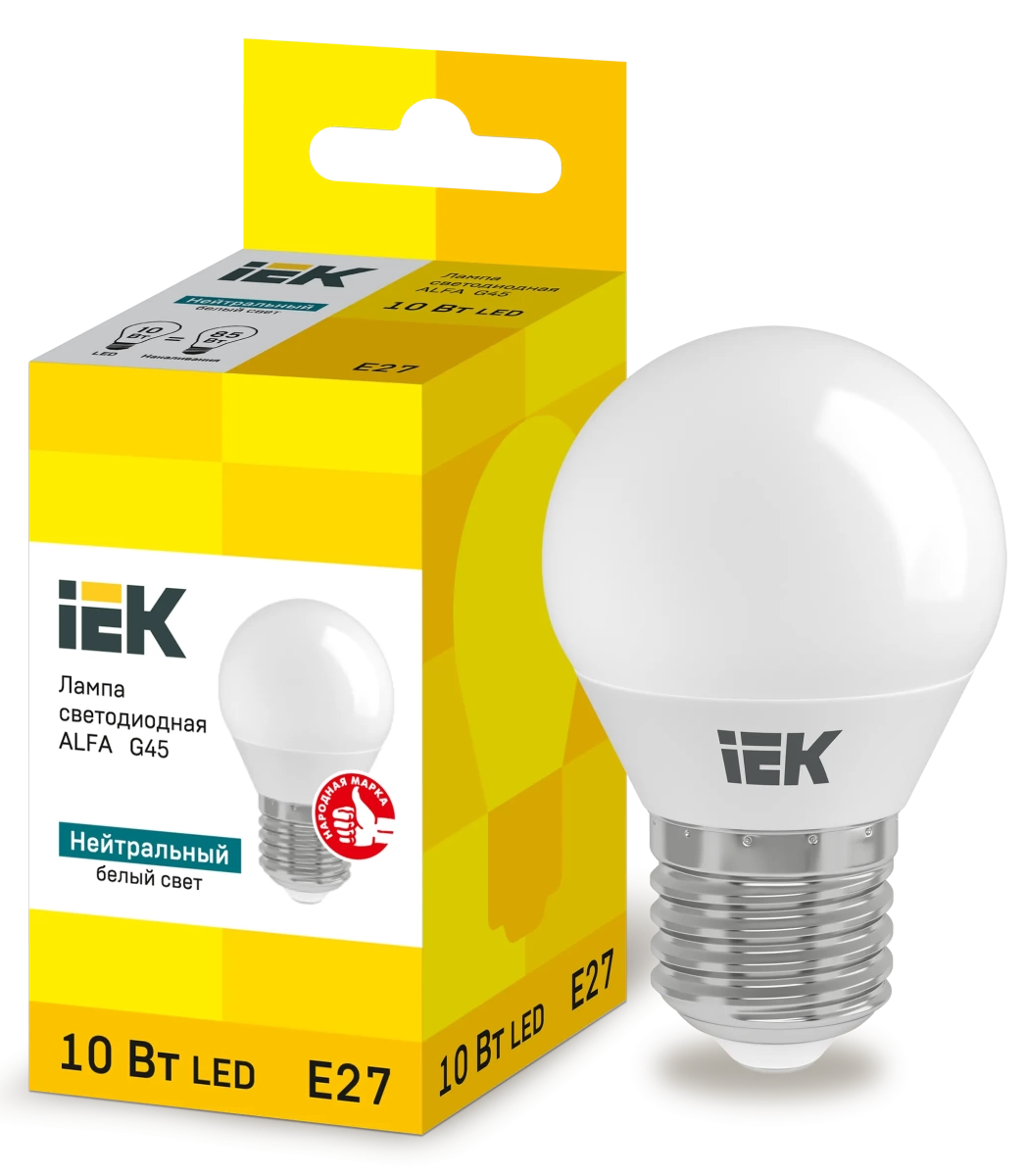 Наименование в каталоге Лампа LED ALFA G45 шар 10Вт 230В 4000К E27 IEK
