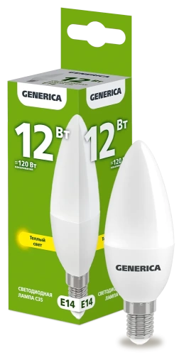 Наименование в каталоге Лампа светодиодная C35 свеча 12Вт 230В 3000К E14 GENERICA