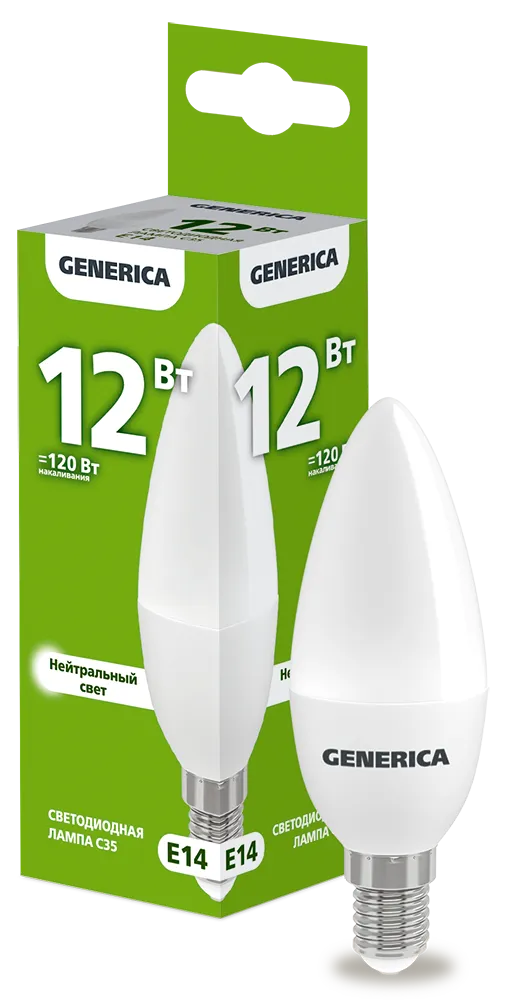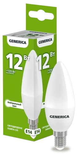Наименование в каталоге Лампа светодиодная C35 свеча 12Вт 230В 4000К E14 GENERICA