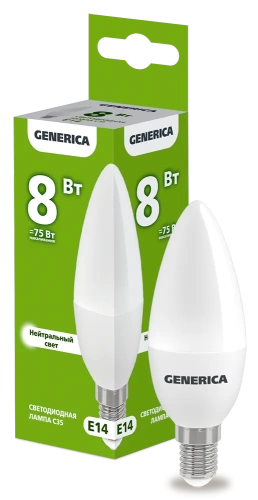 Наименование в каталоге Лампа светодиодная C35 свеча 8Вт 230В 4000К E14 GENERICA