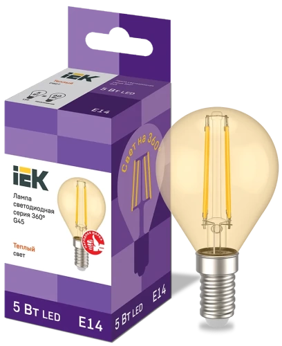 Наименование в каталоге Лампа светодиодная G45 шар золото 5Вт 230В 2700К E14 серия 360° IEK