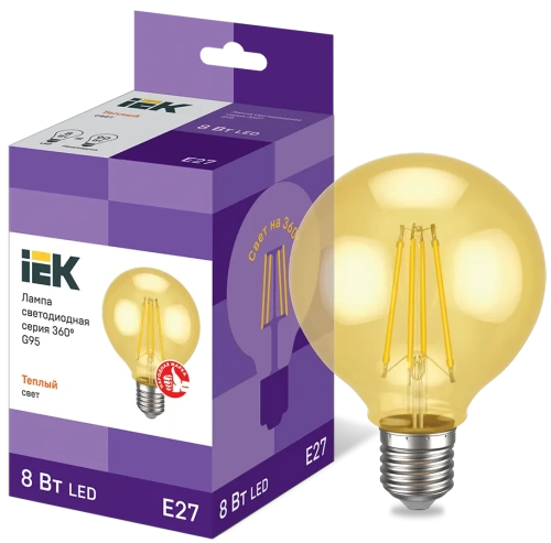 Наименование в каталоге Лампа светодиодная G95 шар золото 8Вт 230В 2700К E27 серия 360° IEK