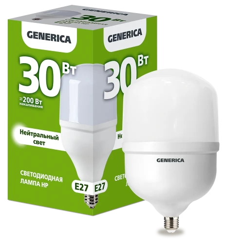 Наименование в каталоге Лампа светодиодная HP 30Вт 230В 4000К E27 GENERICA