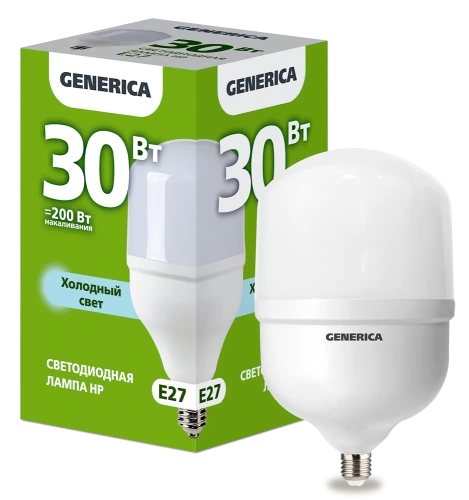 Наименование в каталоге Лампа светодиодная HP 30Вт 230В 6500К E27 GENERICA