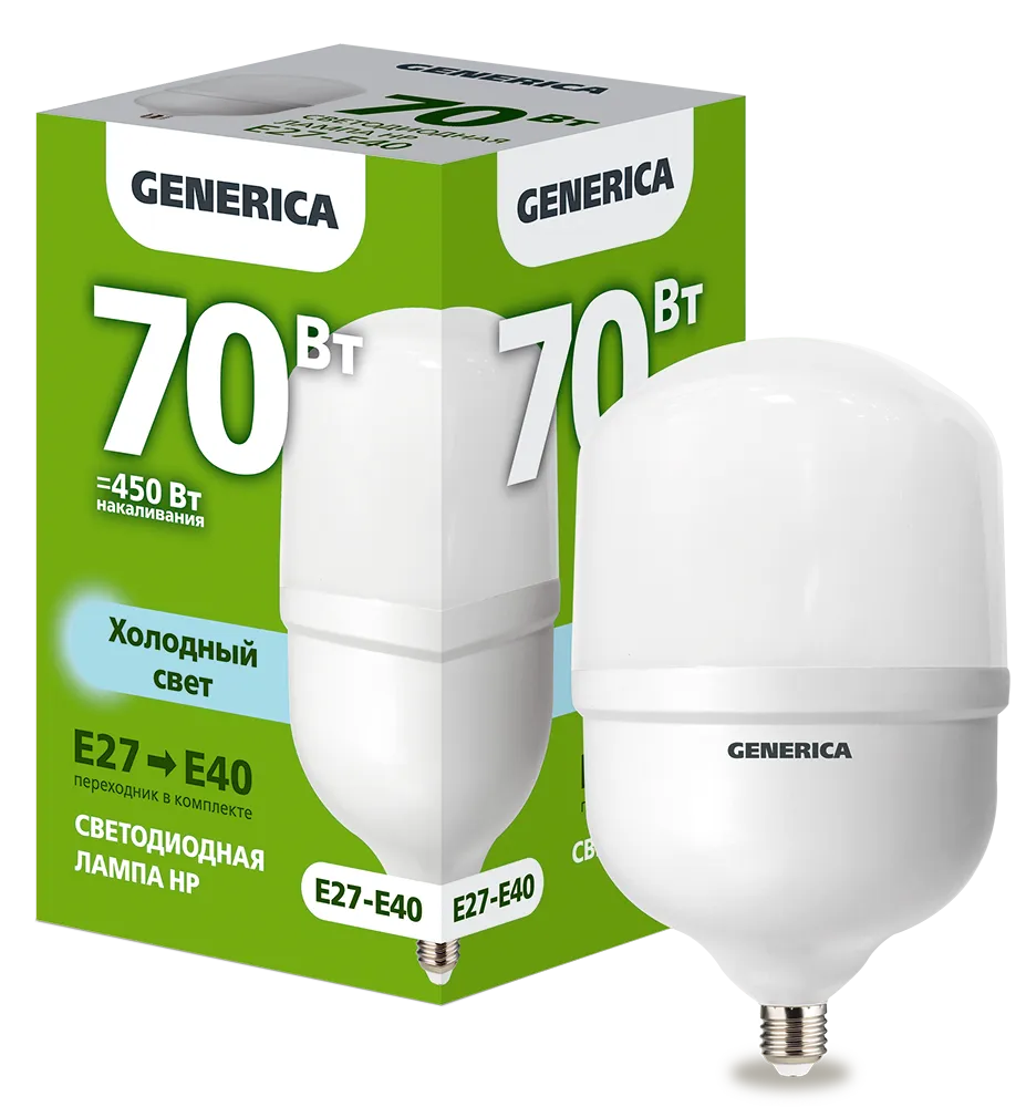 Наименование в каталоге Лампа светодиодная HP 70Вт 230В 6500К E27-E40 GENERICA