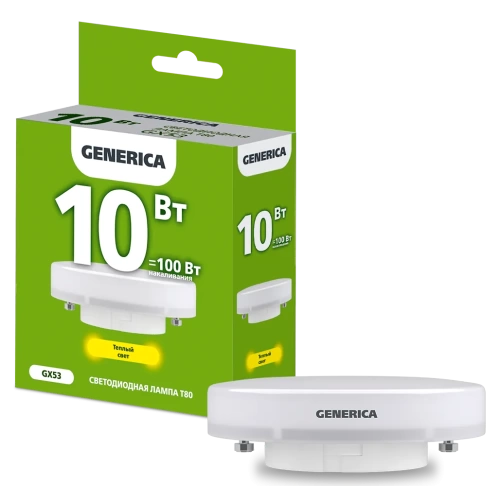 Лампа LED T80 таблетка 10Вт 230В 3000К GX53 GENERICA