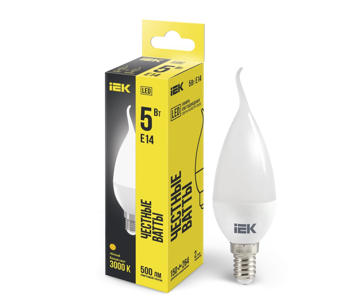 Лампа светодиодная ECO CB35 свеча на ветру 5Вт 230В 3000К E14 ИЭК