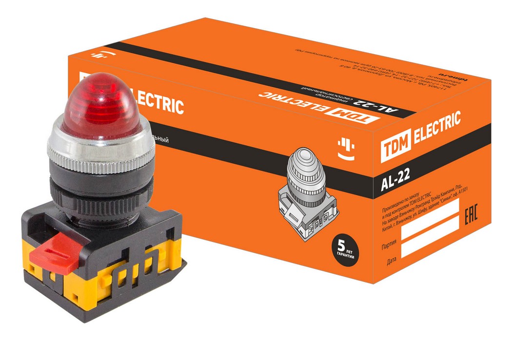 Лампа AL-22 сигнальная d22мм красный неон/230В цилиндр TDM ELECTRIC SQ0702-0008