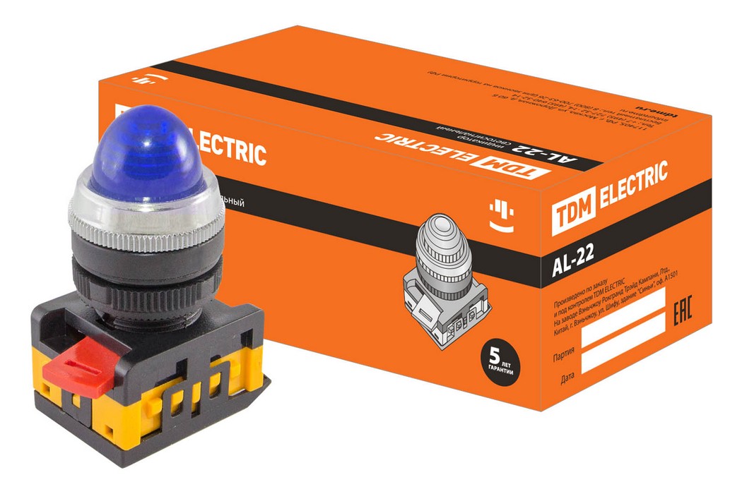 Лампа AL-22 сигнальная d22мм синий неон/230В цилиндр TDM ELECTRIC SQ0702-0036