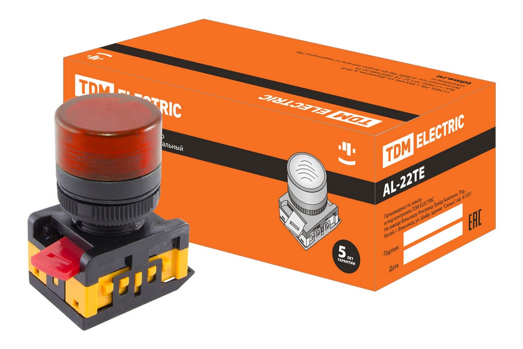Лампа AL-22TE сигнальная d22мм красный неон/230В цилиндр TDM ELECTRIC SQ0702-0010