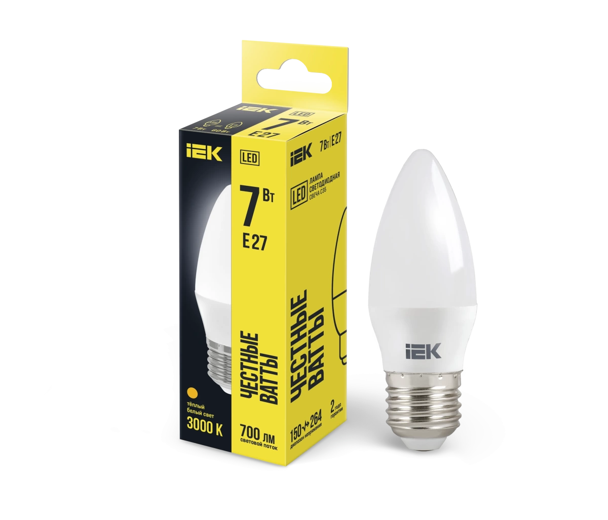 Полные технические характеристики Лампа светодиодная LED 7вт Е27 тепло-белый матовая свеча ECO IEK (ИЭК) LLE-C35-7-230-30-E27
