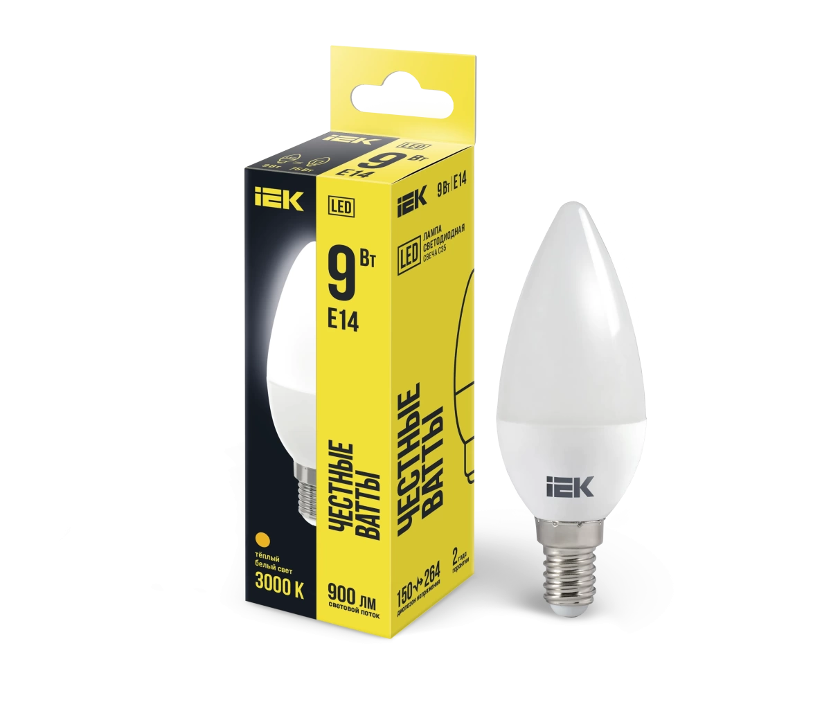 Лампа светодиодная ECO C35 свеча 9Вт 230В 3000К E14 IEK