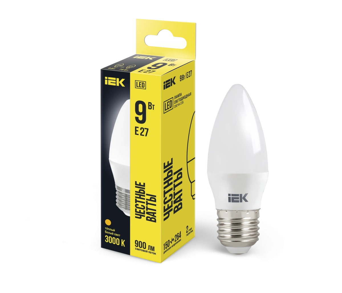 Лампа светодиодная ECO C35 свеча 9Вт 230В 3000К E27 IEK