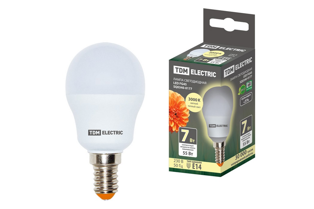 Полные технические характеристики Лампа светодиодная FG45-7 Вт-230 В-3000 К-E14 TDM ELECTRIC SQ0340-0177