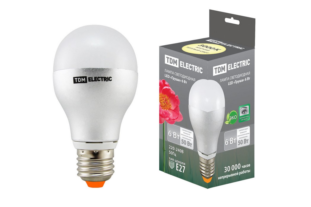 Полные технические характеристики Лампа светодиодная Груша - 6 Вт - 220 В - 3000 К - E27 TDM ELECTRIC SQ0340-0066