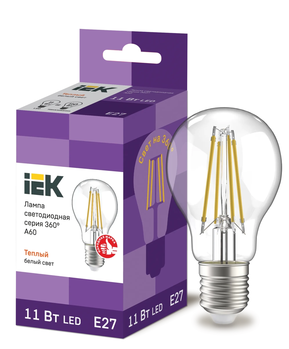 Лампа LED A60 груша прозр. 11Вт 230В 3000К E27 серия 360° IEK