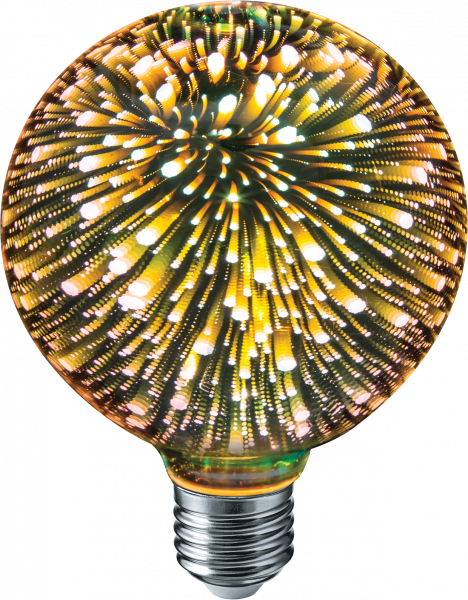 Дополнительная информация Специальное нанесение внутри колбы создает эффект объемного разноцветного светового фейрверка