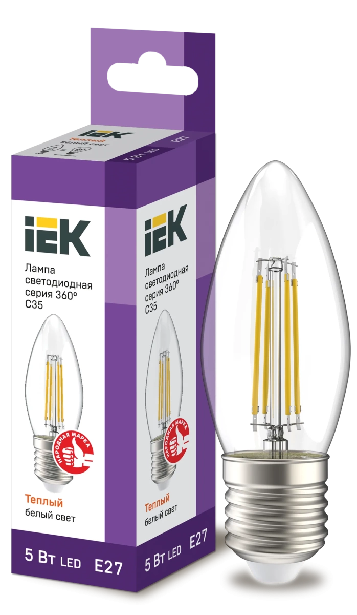 Лампа LED C35 свеча прозр. 5Вт 230В 3000К E27 серия 360° IEK