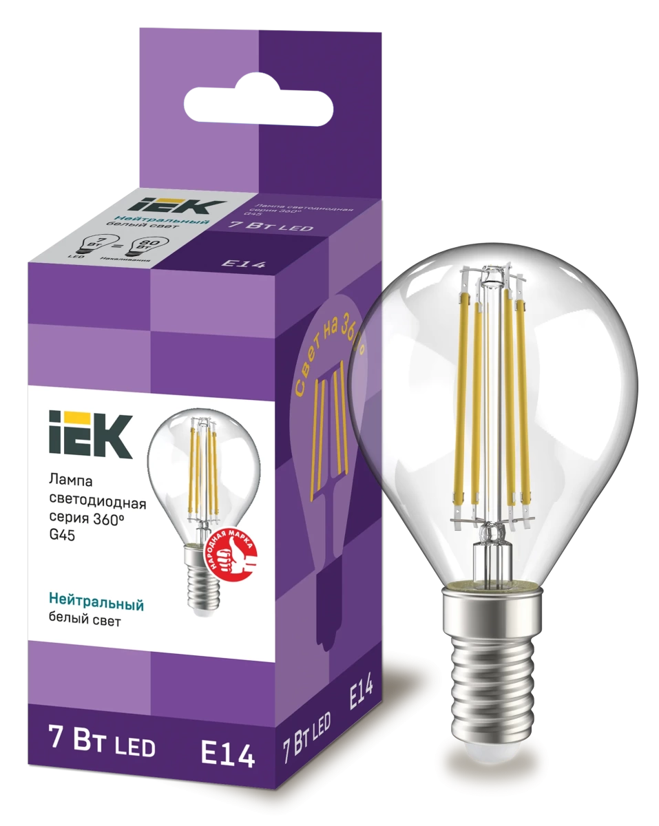 Лампа LED G45 шар прозр. 7Вт 230В 4000К E14 серия 360° IEK