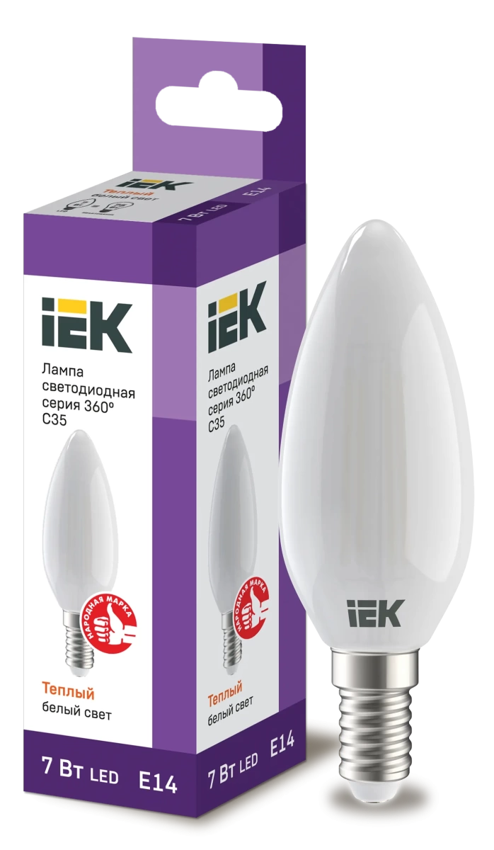 Лампа LED C35 свеча матов. 7Вт 230В 3000К E14 серия 360° IEK
