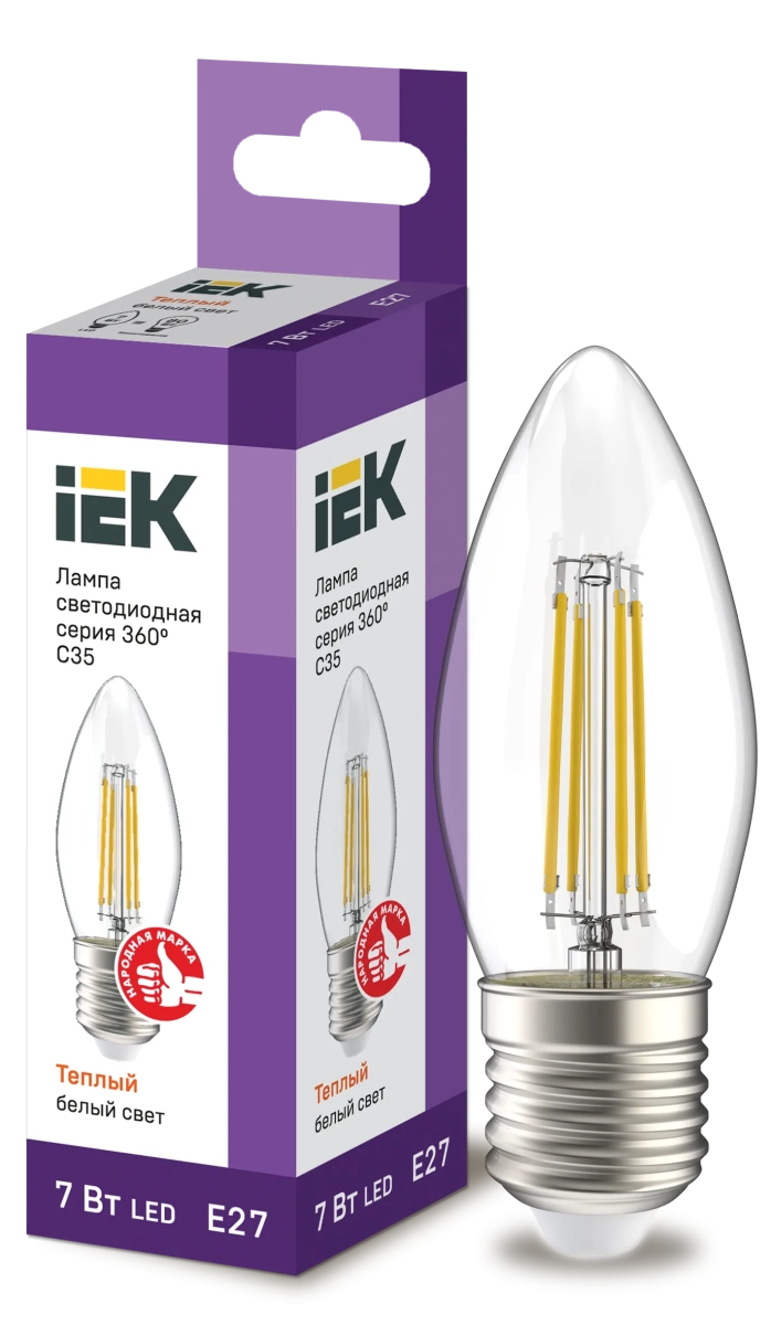 Лампа LED C35 свеча прозр. 7Вт 230В 3000К E27 серия 360° IEK