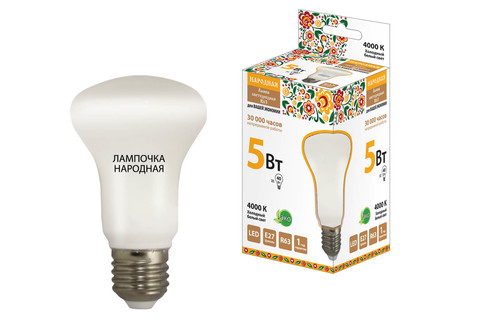 Лампа светодиодная R63 - 5 Вт-230 В -4000 К–E27 Народная