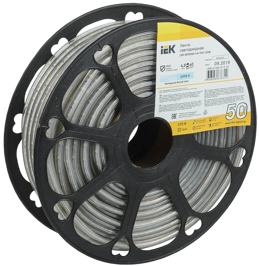 Наименование в каталоге Лента LED 50м LSR-2835W60-4,8-IP67-220В IEK
