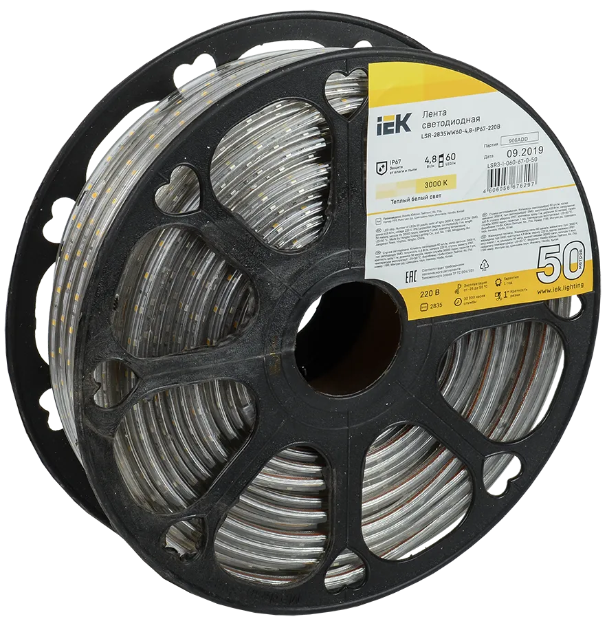 Наименование в каталоге Лента LED 50м LSR-2835WW60-4,8-IP67-220В IEK
