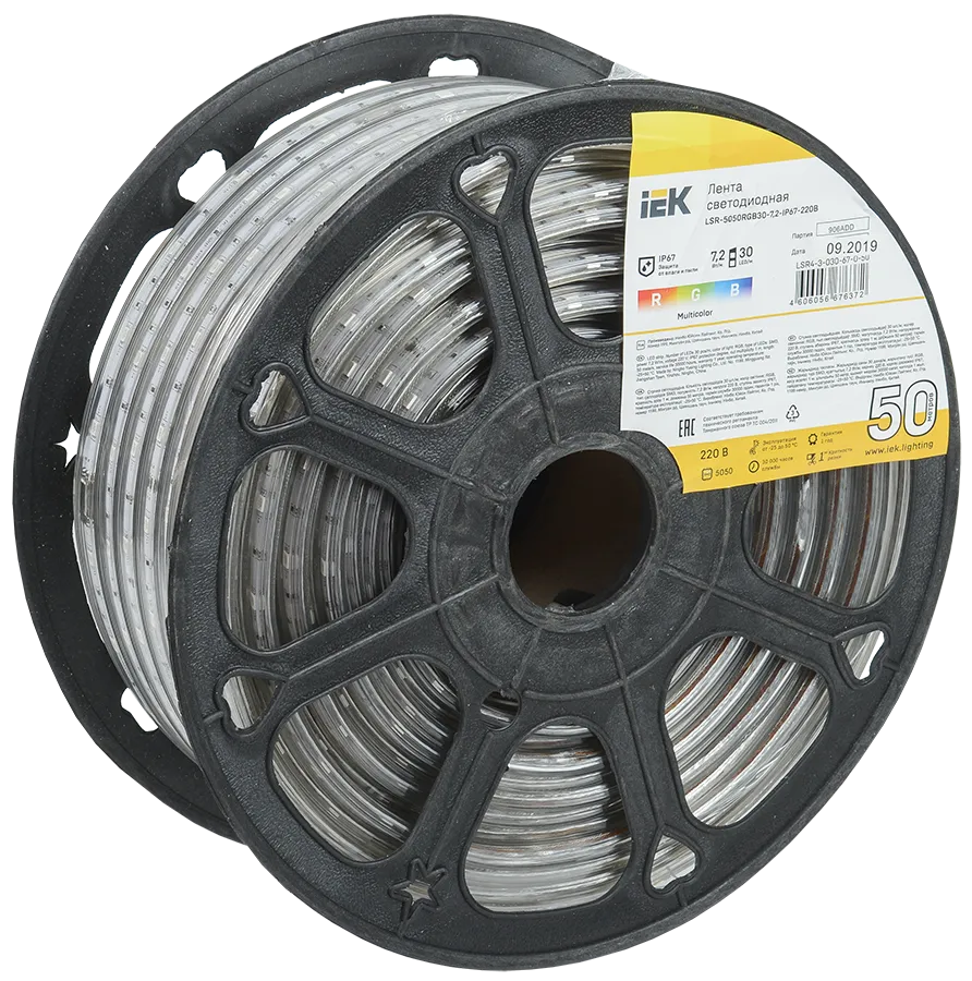Наименование в каталоге Лента LED 50м LSR-5050RGB30-7,2-IP67-220В IEK