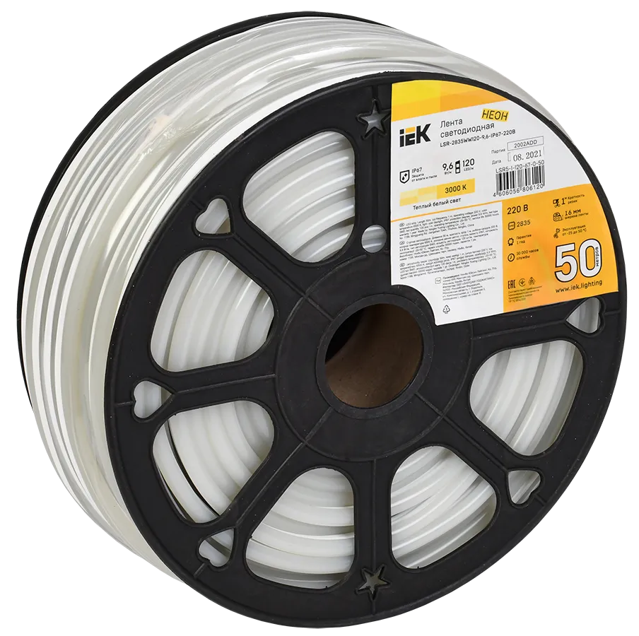 Наименование в каталоге Лента светодиодная неон 50м LSR-2835WW120-9,6-IP67-220В IEK