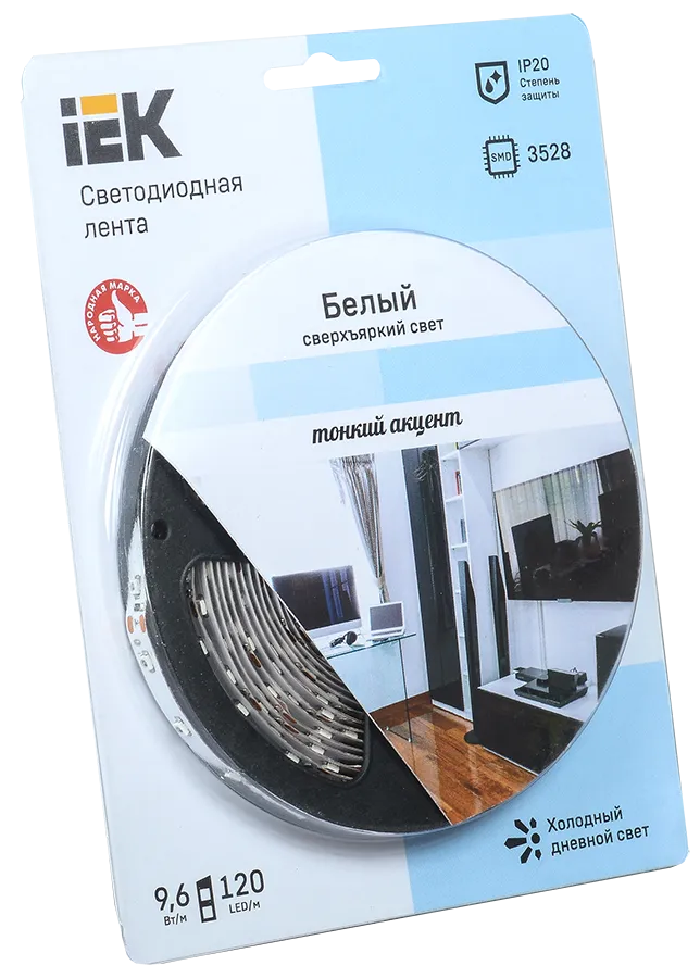 Лента LED 5м блистер LSR-3528W120-9.6-IP20-12V IEK-eco (кр. 1шт.) ИЭК