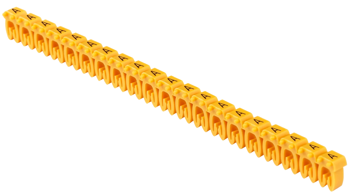 Описание Маркер кабельный открытого профиля типа KE предназначен для цифровой и цветовой маркировки проводов и кабелей сечением 0,75-1,5 мм2. Изготовлен из эластичного материала, позволяющего произвести надежную и быструю фиксацию на проводниках.